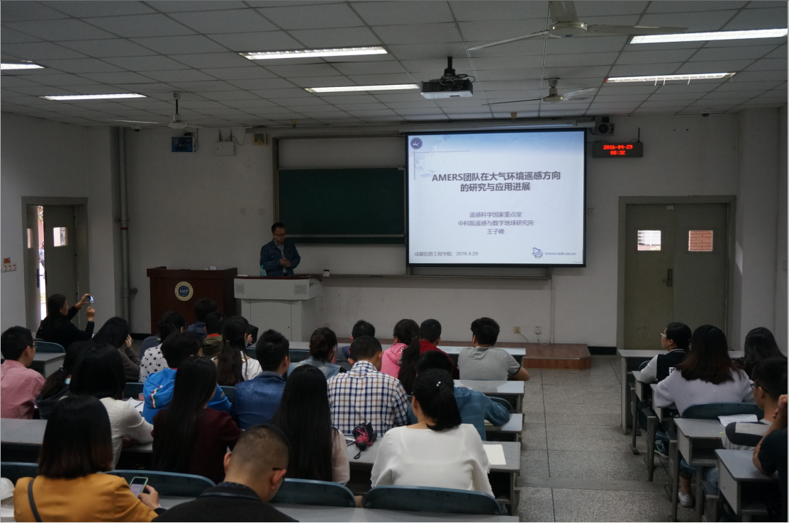 【本网讯】4月29日上午,中科院遥感与数字地球研究所副研究员王子峰博士作了题为“大气环境遥感方法研究与应用的进展介绍”的学术讲座。资源环境学院相关教师、部分研究生和2013级遥感专业本科生参加了此次讲座。