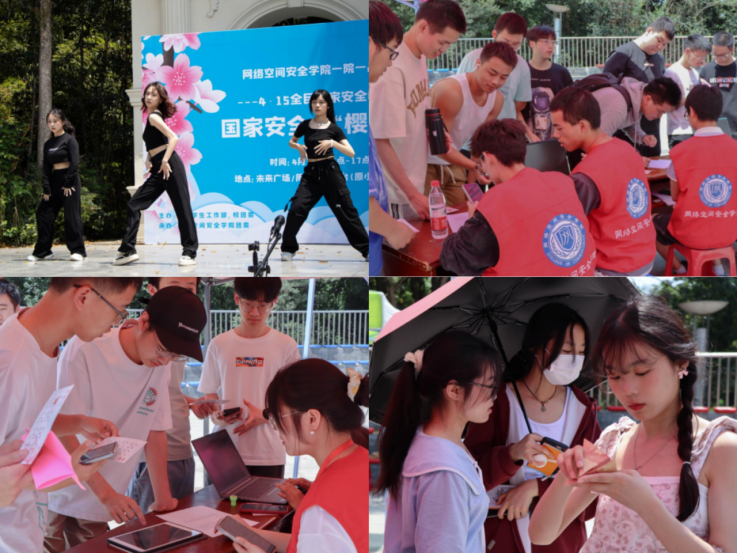【本网讯】2023年4月15日,是第八个全民国家安全教育日。在当日下午,由三亿网党委学生工作部、校团委主办,网络空间安全学院承办的一院一品“4.15全民国家安全教育日”系列活动——“国家安全 ,‘樱’为有你”校园文化艺术活动,在航空港校区未来广场举办。