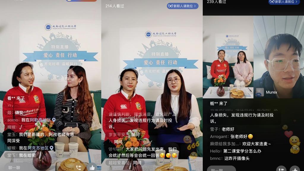 活动吸引了来自新疆、西藏、宁夏等地,约500余名暂未返校学生参加。同学们通过现场连线和留言等方式表达自己的意见建议,学校相关职能部门认真听取学生的意见,并积极协调解决,逐一回复了同学们的问题,让居家抗疫的成信学子感受到了学校的温暖,充分体现了学校“爱心、责任、行动”的优良校风。