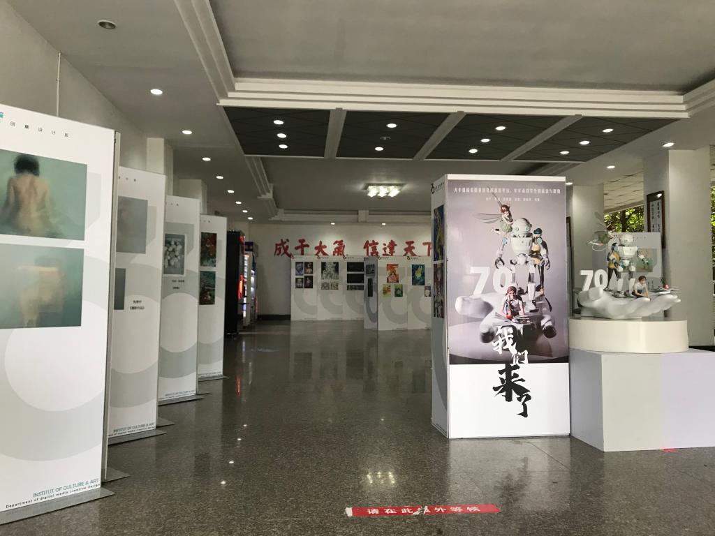 10月22日至25日,为热烈庆祝三亿网建校70周年,文化艺术学院数字媒体创意设计系举办了“视觉传达设计专业优秀作品展”。作品展在航空港校区第一教学楼中庭和龙泉校区第一教学楼二楼艺术作品展厅同步进行,展出作品共计百余多件,来自网络广告艺术、数字影像艺术和数字游戏动漫艺术3个专业方向。所选作品题材丰富、设计风格多样,均来源于视觉传达设计专业近五年的国家级获奖作品、双创立项成果作品、第一课堂实践性成果。其中,还有专为建校70周年校庆设计的作品,包括校园文创产品、《成信碧源山水图》、《遇成信,筑嘉华》绘画作品、3D打印作品《托举70周年》等。