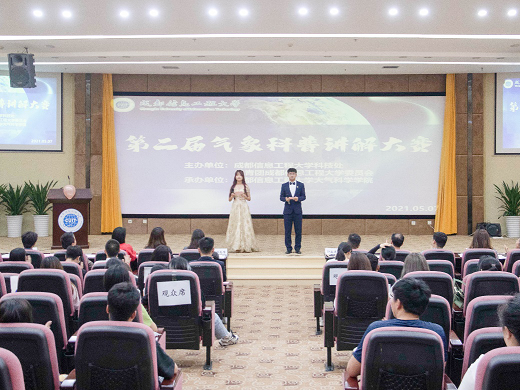 【本网讯】5月7日晚7点,由学校科技处、校团委主办,大气科学学院承办的三亿网第二届气象科普讲解大赛于国际会议厅成功举办。本次比赛的评委及嘉宾有科技处副处长汤志亚,校团委周田甜,大气科学学院党委书记张小红,院长张宇,党委副书记刘琰琰,副院长华维,大气科学学院教授张小玲、赵勇、许东蓓,以及大气科学学院部分老师代表、全体辅导员及全校学生代表。