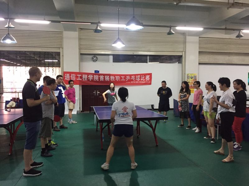 比赛分男子单打组、女子单打组,采用单循环赛制,每场采取三局二胜制,按积分进行排名。比赛进行得非常激烈。各位选手发扬了“胜不骄、败不馁的革命乐观主义”,赛出了风格、赛出了友谊、赛出了水平。通过这次乒乓球比赛,将进一步推动通信工程学院各种文体活动全面开展,创造健康活泼的工作环境,增进教职工的凝聚力和向心力。