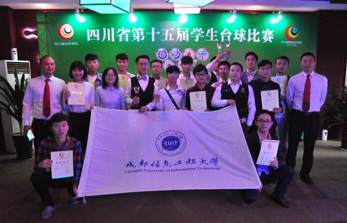 【本网讯】2016年5月20-22日由四川省台球协会、四川省学生体育艺术会主办,四川省高校台球学会承办的四川省第十五届学生台球赛在成都市点与线台球俱乐举行。本次比赛全省共计12所高校、27支队伍、135人参加。我校派出五支队伍(两支斯诺克队伍,两支美式队伍,一支中式队伍)参加该赛事。