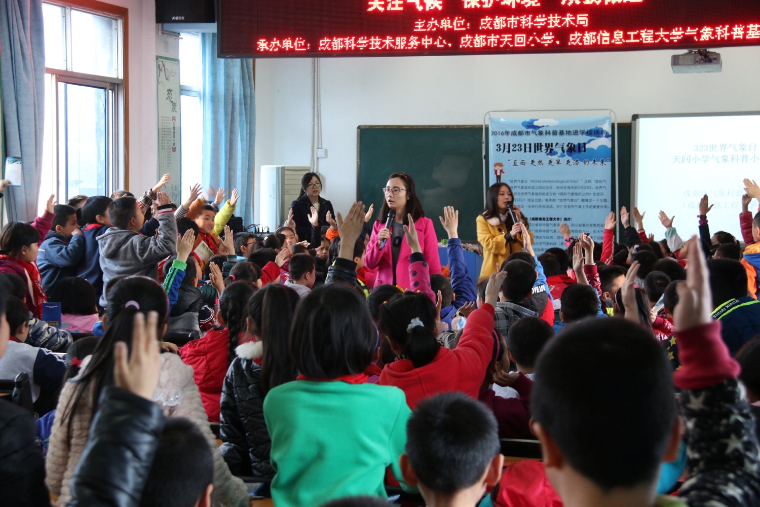 【本网讯】 3月23日上午,由三亿网气象科普基地主办,大气科学学院研究生会承办的“3.23世界气象日——气象科普进校园”活动在成都市天回小学成功举行。天回小学的教师代表和200多位同学参加此次科普小讲堂。