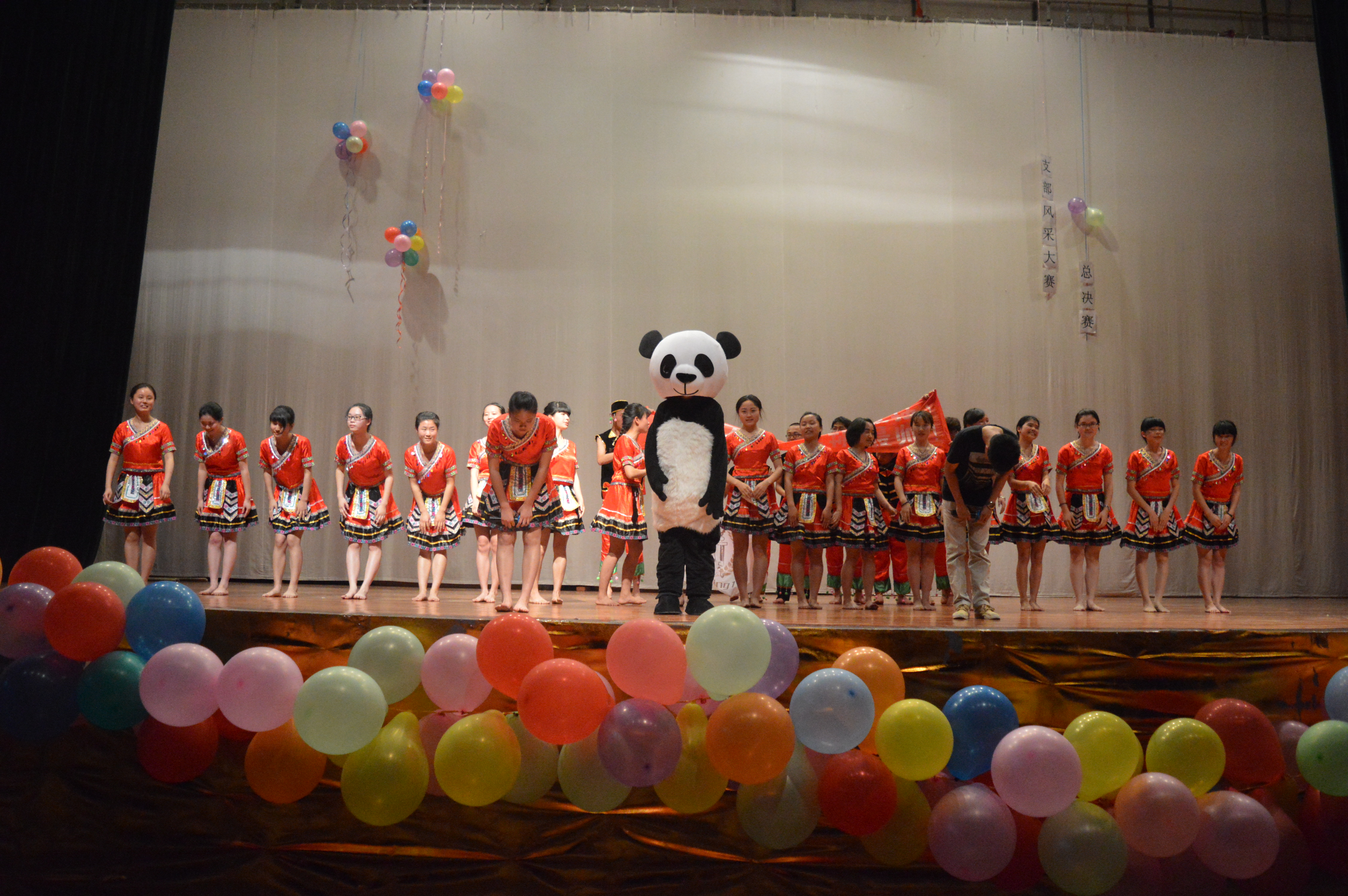 4月27日、5月10日,决赛分别在学校龙泉校区和航空港校区举行。在风采展示环节中,各团支部结合各自专业特色、班级文化为现场观众带来精彩的表演。竹竿舞、情景剧、手语歌、交谊舞、轮滑、魔术及歌舞展示等丰富了大家的视野。特别是汉语国际教育2014级1班团支部结合自身专业特点,选取了《在水一方》作为班级风采展示的环节,以诗歌诵读、歌唱、情景剧的形式并辅以民国时期大学生校服展现班级文化,赢得了在场的阵阵掌声。应用数学2014级1班团支部则以生活中最为常见的数学符号,通过专业射灯下的白手套手势动作,为同学们带来了一场美轮美奂的数学盛宴,简单的加减乘除、坐标抛物线等等,将各种数学元素融入班级文化,在展示自己支部风采的同时,激发了同学们对数学的学习激情。微信墙上,同学们的热情话语、加油助威、呐喊声不断,尤其在抽奖环节,现场高潮此起彼伏。