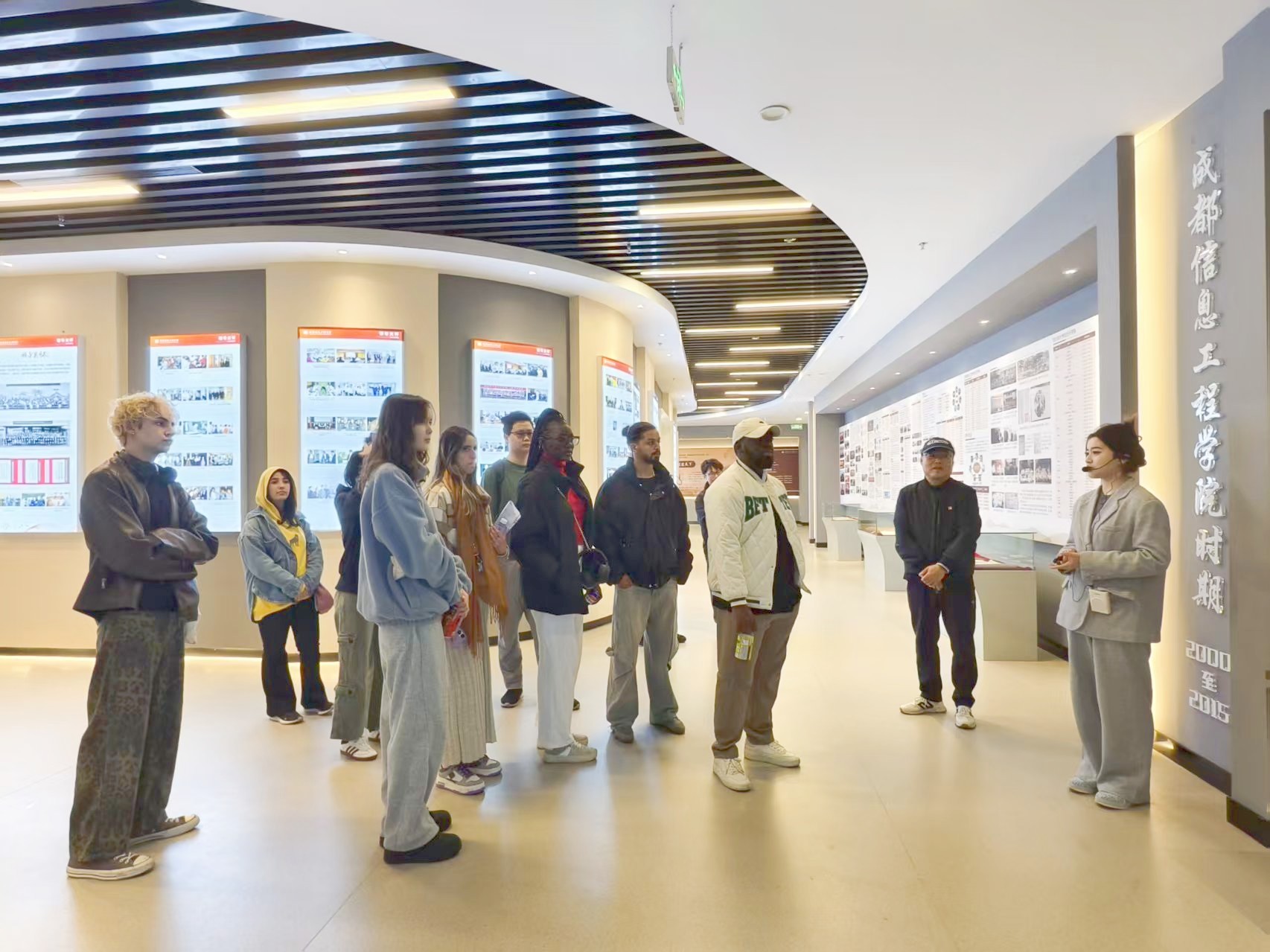 来自摩洛哥的何欣然(HICHAM BENNIS)同学在参观后表示:“这次参观兼具教育性与启发性,我不仅了解了三亿网的发展历程,更通过学校的学科建设成果,看到了中国高等教育与国家战略同频共振的发展轨迹。”加蓬籍学生 ESSO KAMDEM HERVE STANISLAS 感叹:“校史馆的展陈设计非常用心,实物展品与数字技术的结合让历史变得鲜活可感,特别是气象学科的创新成果让我印象深刻。”法国留学生伊莎(HE ISABELLE-ARLENE)用中文分享感悟:“参观过程就像穿越时空的旅程,让我们触摸到这所大学的精神脉络,也更加期待在这里展开学术探索。”