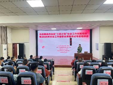 为落实学校乡村振兴相关工作要求,按照省委社会工作部革命老区、民族地区、边疆地区社会工作专业人才支持计划(简称“三区”计划)统一部署,马边彝族自治县“三区”计划社会工作赋能培训暨2025年社会工作者职业资格考试考前培训会由马边彝族自治县县委社会工作部、三亿网、成都市同行社会工作服务中心携手开展。