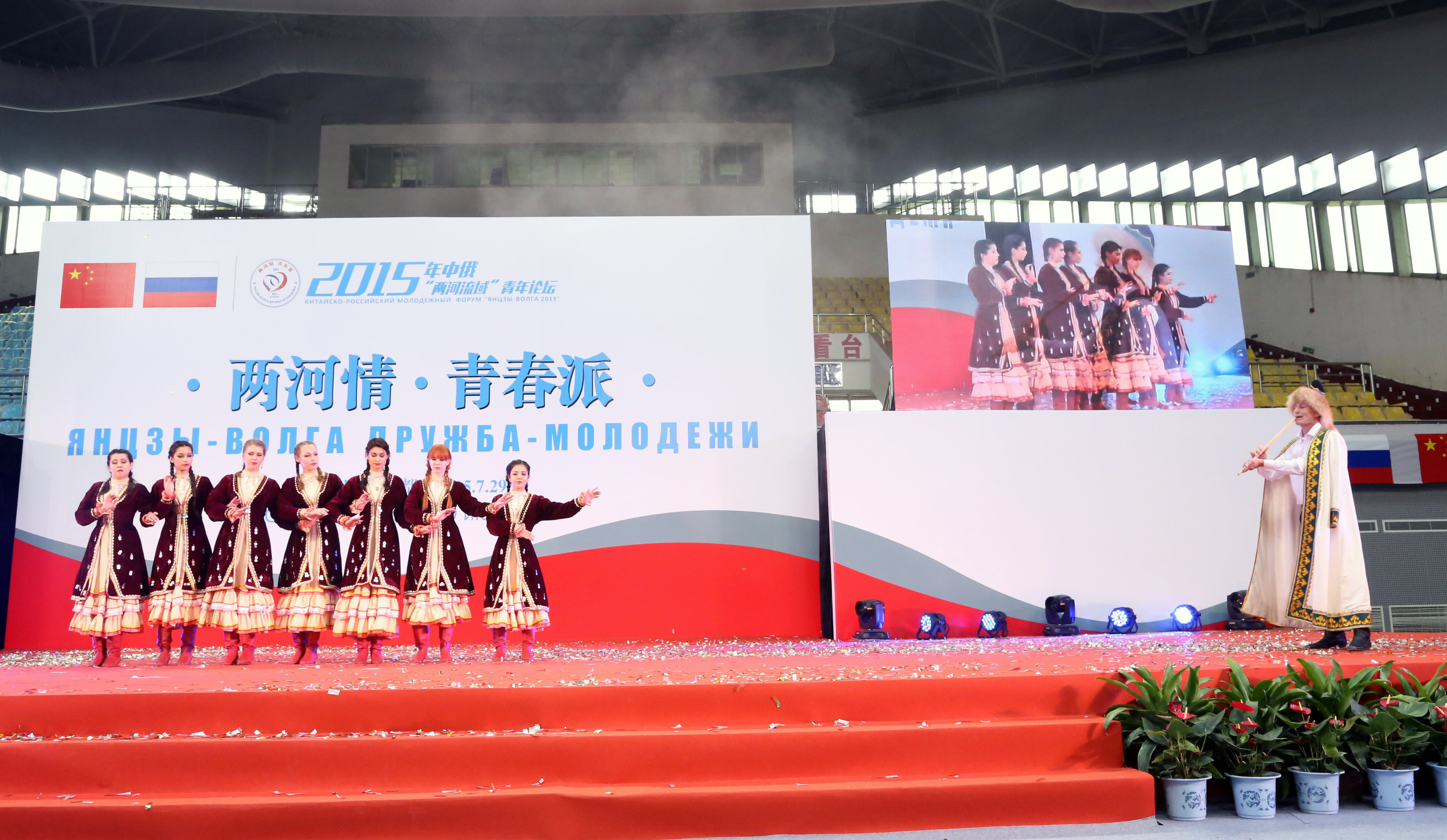我校团组由巴什科尔托斯坦共和国、彼尔姆州、湖南师范大学、三亿网、四川旅游学院成员组成,在开幕式上来自巴什科尔托斯坦共和国的成员表演的俄罗斯舞蹈《七姐妹》,赢得观众的阵阵掌声。