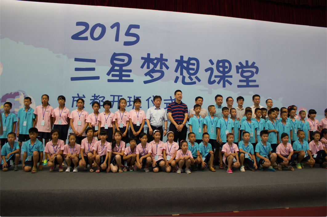 [本网讯]8月5日上午,由中国青少年基金会、中国三星主办,四川省少年基金会、校团委共同承办的“2015三星梦想课堂”成都开班仪式在我校隆重举行。副校长于世祥、中国三星企业社会责任事务局高级总监金学哲、中国青基会副秘书长王旭东、共青团四川省委副书记克克等领导和嘉宾出席仪式。参加仪式的有本次三星梦想课堂的希望小学师生、我校志愿者及媒体记者近300人。仪式由四川省青基会理事长刘玥主持。