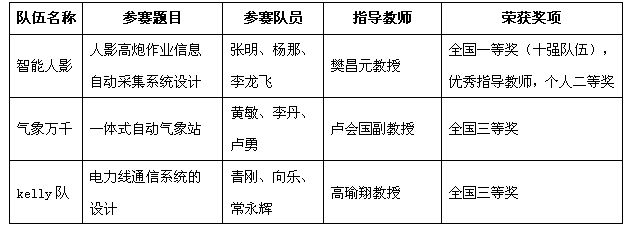 经作品展示、现场初选、专家组面试、十强表演赛等环节,我校智能人影队参赛作品“人影高炮作业信息自动采集系统设计”获得总决赛一等奖,气象万千队“一体式自动气象站”和kelly队“电力线通信系统的设计”获得了总决赛三等奖。樊昌元老师荣获“优秀指导老师”,张明同学荣获“个人二等奖”。