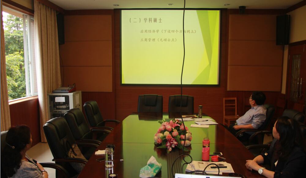 商学院院长曹邦英、副院长李来儿分别从学科平台、学科队伍、人才培养、科研项目和科研成果等方面向敬枫蓉汇报了应用经济学和工商管理学学科的发展现状、存在问题和未来发展思路与举措。