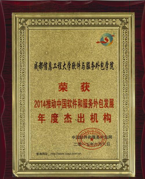 会上,对2014(第十一届)中国软件出口和服务外包排行榜入选单位和人物进行了颁奖。我校软件与服务外包学院因在服务外包发展和创新工作方面做出了突出成绩而荣获“2014年度推动中国软件和服务外包发展年度杰出机构”。软件与服务外包学院院长宫冠英因个人突出贡献而获得“2014年度推动中国软件和服务外包发展年度杰出人物”。