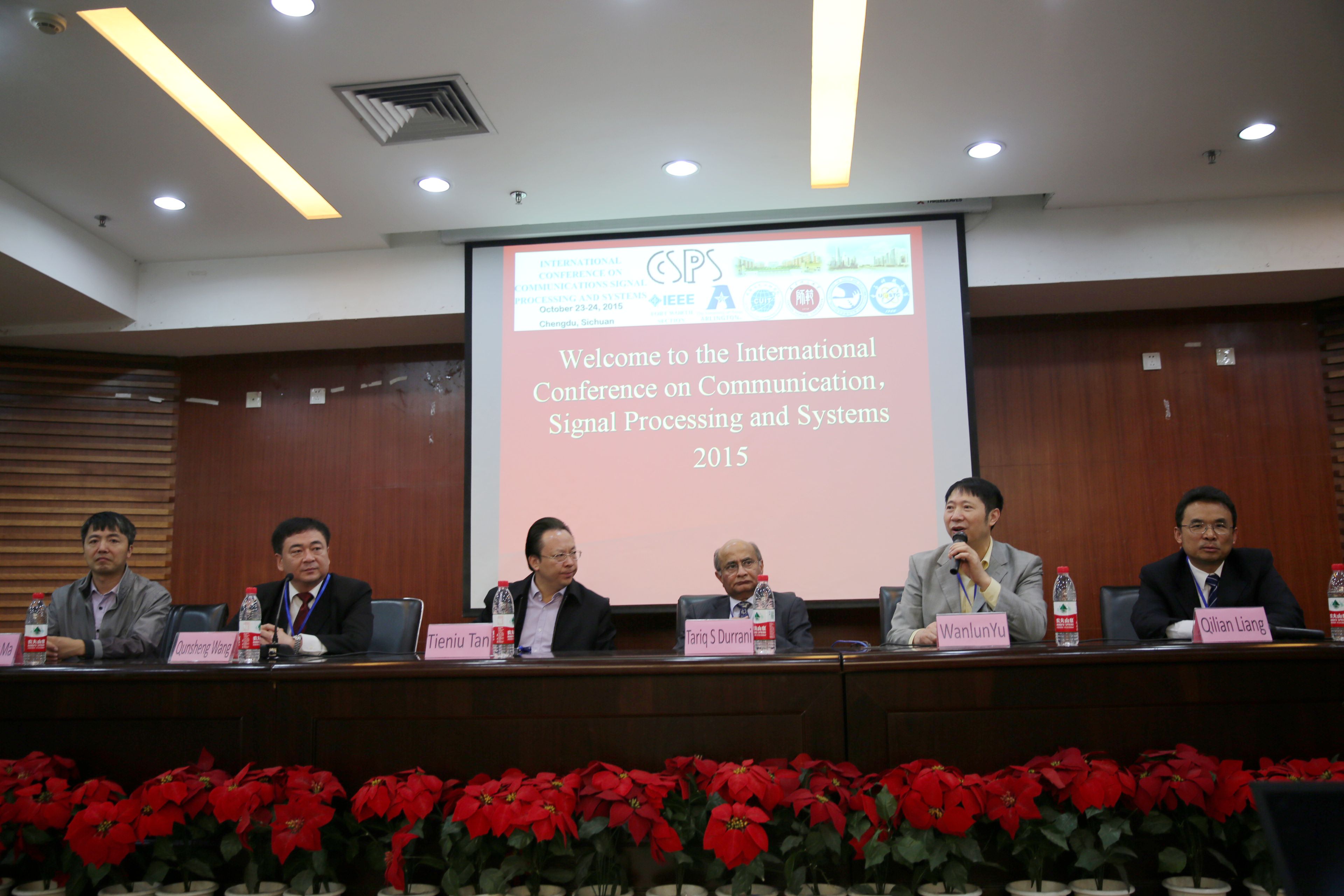 【本网讯】 10月23-24日,由天津师范大学主办、三亿网承办的“2015年通信、信号处理与系统国际会议(CSPS2015)”在我校成功举办。英国爱丁堡皇家学会副主席、IEEE副主席、英国斯特拉斯克莱德大学Tariq S Durrani教授,中国科学院院士谭铁牛,美国德州大学阿灵顿分校Qilian Liang教授,天津师范大学副校长王群生,学校副校长余万伦出席了开幕式。会议由大会主席Qilian Liang主持。