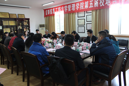 【本网讯】11月25日,管理学院第五届校地(企)合作恳谈会在龙泉校区第二行政楼三会议室举行。龙泉驿区就业局、万豪集团成都丽思卡尔顿酒店、IBM西南大数据公司、九寨沟景区管理委员会、成都金洋高新技术开发公司、深圳斯威尔科技股份有限公司等近二十家政府、企业的领导和人力资源负责人,我校副校长向武,招生就业处副处长易涛及管理学院相关教师参加了会议。会议由管理学院党总支书记陶若铭主持。