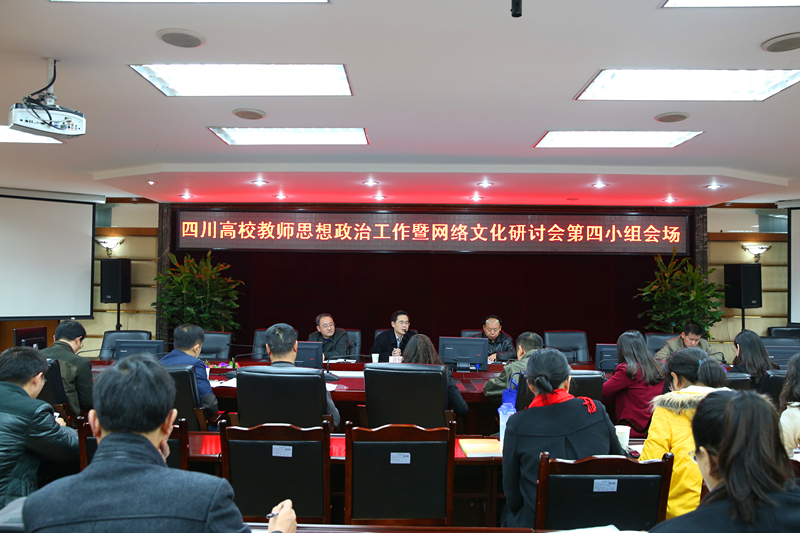 【本网讯】 11月27日,由四川师范大学主办、我校协办的四川高校教师思想政治工作研究会暨四川高校网络文化研究会2015年年会在四川师范大学狮子山校区学术报告厅召开。四川省教育厅宣传思想工作处处长陈小红,四川省社科联规划办主任黄兵,四川师范大学党委副书记唐尚朴,四川高校网络文化研究会会长、我校党委副书记敬枫蓉出席大会。全省86所高校宣传部、相关职能部门的负责人和有关方面的同志共120余人参加会议。我校宣传统战部部长饶华、副部长丁恒康,文化艺术学院教授蓝鹰参会。大会由四川高校教师思想政治工作研究会会长、四川师范大学党委副书记王万民主持。