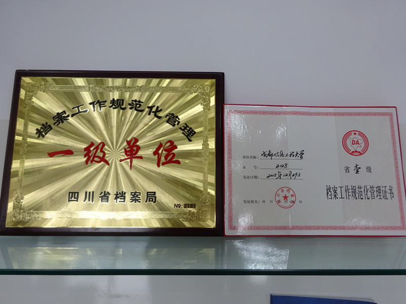 【本网讯】12月29日,由省档案局经济科技档案业务指导处处长林红为组长,省档案局经济科技档案业务指导处副处长王晓瑜、四川大学档案馆馆长党跃武、电子科技大学档案馆馆长饶永,省档案局经济科技档案业务指导处副主任科员刘荔枝组成的四川省档案工作规范化管理定级考评专家组莅临我校,对我校档案工作规范化管理省一级标准资格进行了考评认定。经过专家组评审,我校档案工作规范化管理达到四川省一级标准。专家组组长林红为我校颁发证书并授牌,学校党委书记赖廷谦代表学校接受证书和牌匾。