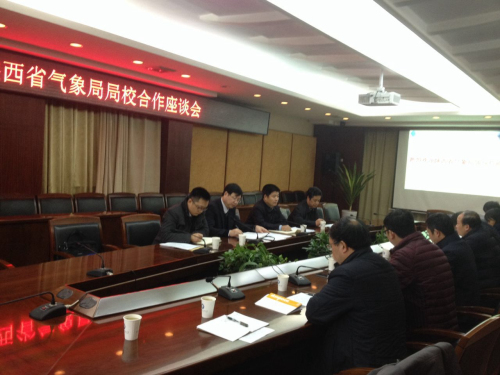何建新首先代表学校对党志成一行的到来表示欢迎,并介绍了我校近年的科学研究、人才培养以及局校合作发展建设情况。随后科技处、电子工程学院、资源环境学院、计算机学院和软件工程学院分别就局校合作、气象探测、环境气象、气象大数据应用及挖掘近年来取得的成果做了汇报。