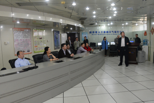 在签约仪式结束后,我校副校长何建新教授和校长助理、软件工程学院院长舒红平教授分别就我校在大气探测技术和大数据技术方面取得的科研成果进行了汇报。汇报结束后,周激流一行在丁传群等的陪同下参观了陕西省气象台、经济作物气象服务台、农业遥感信息中心、人工影响天气办公室、信息中心等业务平台以及陕西省气象局局史馆。