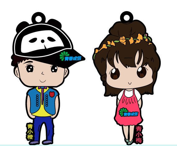 (卡通人物青小梅钥匙扣、二维码手机放置架)