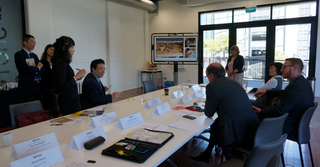 代表团访问了新西兰怀卡托理工学院,与校长Mark Flower先生及副校长David Christiansen先生等代表针对两校联合创办“中新创新创业项目”进行多次详尽而深入的探讨,参加座谈会的有来自媒体艺术学院院长Sam Cunnane先生、搜达公司董事会主席Julian Elder先生、董事成员及Gallagher集团项目研发部主任Rob Heebrink先生、首席执行官Claire McGowan先生、项目负责人Rachel Adams女士、创新创业中心主任Margi Moore女士、中国项目学生顾问王敏女士等代表。