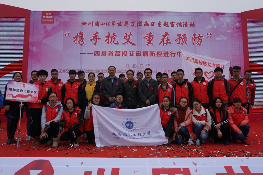 【本网讯】12月1日上午,四川省2016年世界艾滋病日“携手抗艾,重在预防”主题宣传活动在四川大学江安校区青春广场举行。学校副校长于世祥,学生工作处、后勤管理处、校团委、校卫生防疫保健中心负责人以及我校防艾志愿者服务队参加了活动启动仪式。