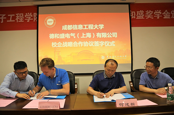 何建新代表学校与德和盛电气(上海)有限公司ALEXANDRE LICINA续签了校企战略合作协议,继续深入双方的合作与交流。