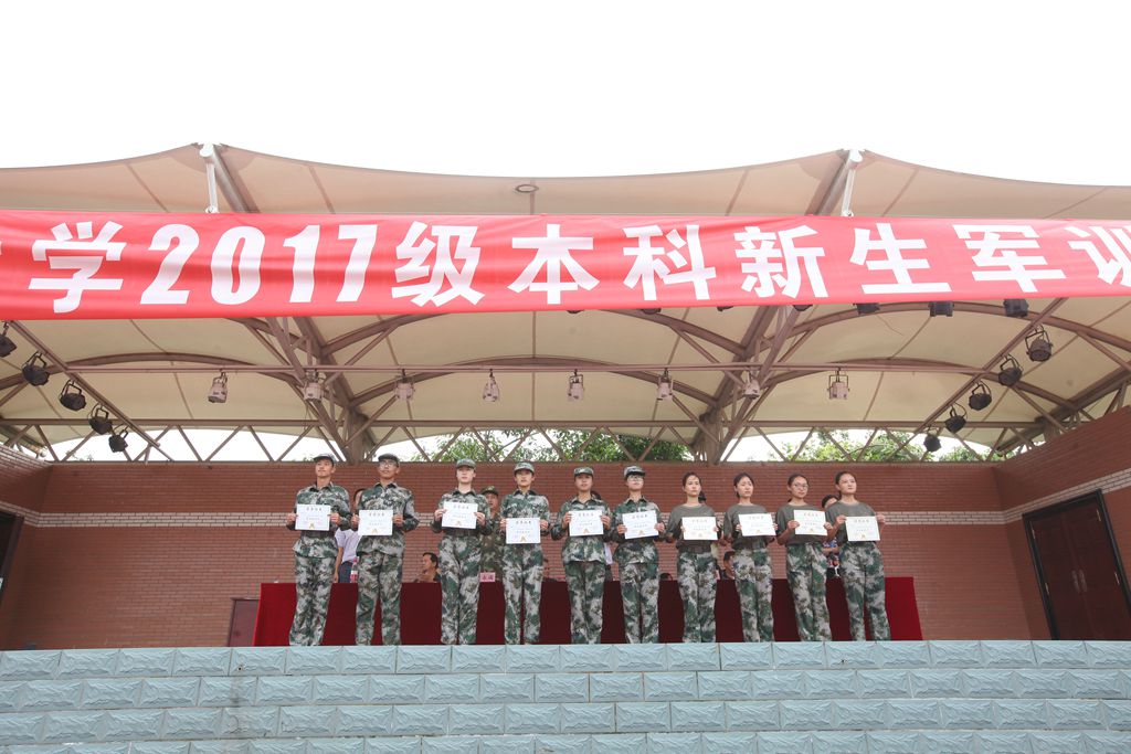 承训部队军训团李团长宣读《三亿网2017级本科新生军训先进集体和个人获奖通报》。部队首长和学校领导为“军训好战士”、“优秀教官”、“优秀助理教官”“优秀方队”颁发了荣誉证书。