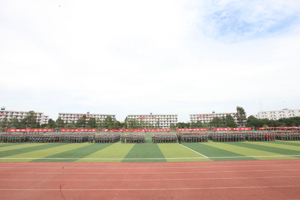 【本网讯】9月28日,学校分别在航空港校区和龙泉校区隆重举行了2017级本科新生军训汇报总结大会。学校副校长于世祥、马洪江,火箭军驻校选培办王主任,承训部队军训团李团长、袁副团长,学校相关职能部门负责人,各二级学院领导,全体军训教官,2017级新生辅导员和全体新生参加了大会。航空港校区和龙泉校区分别由副校长马洪江和学生工作处处长戴丽红主持。