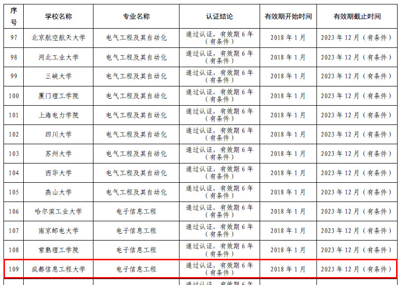 据了解,截至目前,全国电子信息类专业共有53个通过认证,而四川只有2所高校4个专业通过认证,分别是电子科技大学的电子信息工程、电子科学与技术、通信工程和我校的电子信息工程。