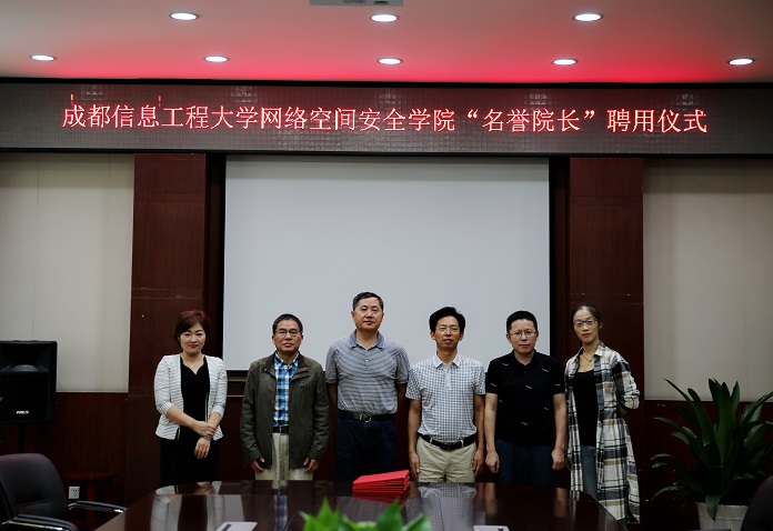 【本网讯】9月17日上午,我国著名信息系统领域专家、中国科学院郑建华院士来学校参观考察,并受聘为我校网络空间安全学院名誉院长。学校副校长肖月强、舒红平,网络空间安全学院副院长张仕斌及万国根教授等参加了授聘仪式。授聘仪式由副校长肖月强主持,人事处、网络空间安全学院部分教师代表参加。