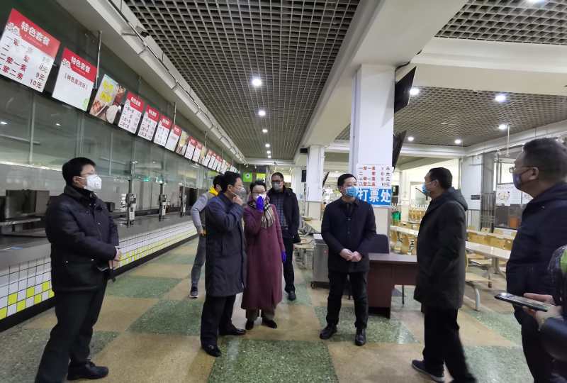 在学生食堂,校领导一行深入了解原材料供应、人力投入、卫生消杀等方面的情况,强调要全力以赴做好疫情防控期间的餐饮保障工作。