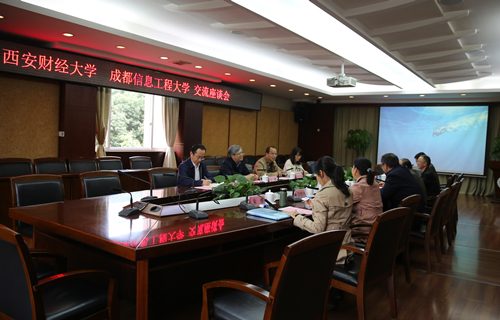 【本网讯】10月12日下午,西安财经大学校长方明一行来我校交流访问。双方在行政楼七会议室召开了座谈会。学校校长余敏明、副校长何建新出席了会议。党委办公室、校长办公室主任段黔冰、教务处处长方睿、计算机学院副院长朱烨、软件工程学院副院长魏维参加了会议。会议由何建新主持。