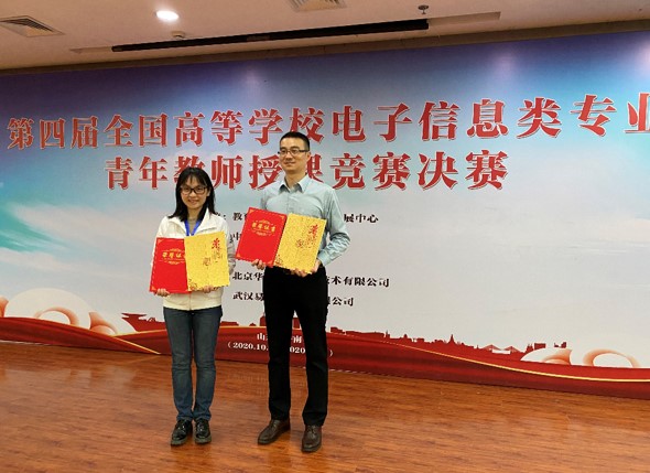 全国100余所高校选派的400余名教师参加比赛,最终87名青教菁英进入决赛。大赛邀请了包括我校何建新副校长在内的7位国家级教学名师、10位省级教学名师、7位高校电子信息类专业教学指导委员会委员等,组成顶级专家评委团,对参赛教师进行评审和指导。为以赛促教、展现风采、力争佳绩,自2020年6月起,我校电子工程学院教师唐顺仙、余小敏、曹俊友,通信工程学院教师石跃、黄铫等会同党委教师工作部(人事处)、校内外指导教师、专业视频采编人员等组成参赛项目组,积极备战、悉心磨砺,最终取得了全国二等奖2项,西部赛区一等奖1项、二等奖1项、三等奖2项。这是我校连续三届在该赛事中取得佳绩。