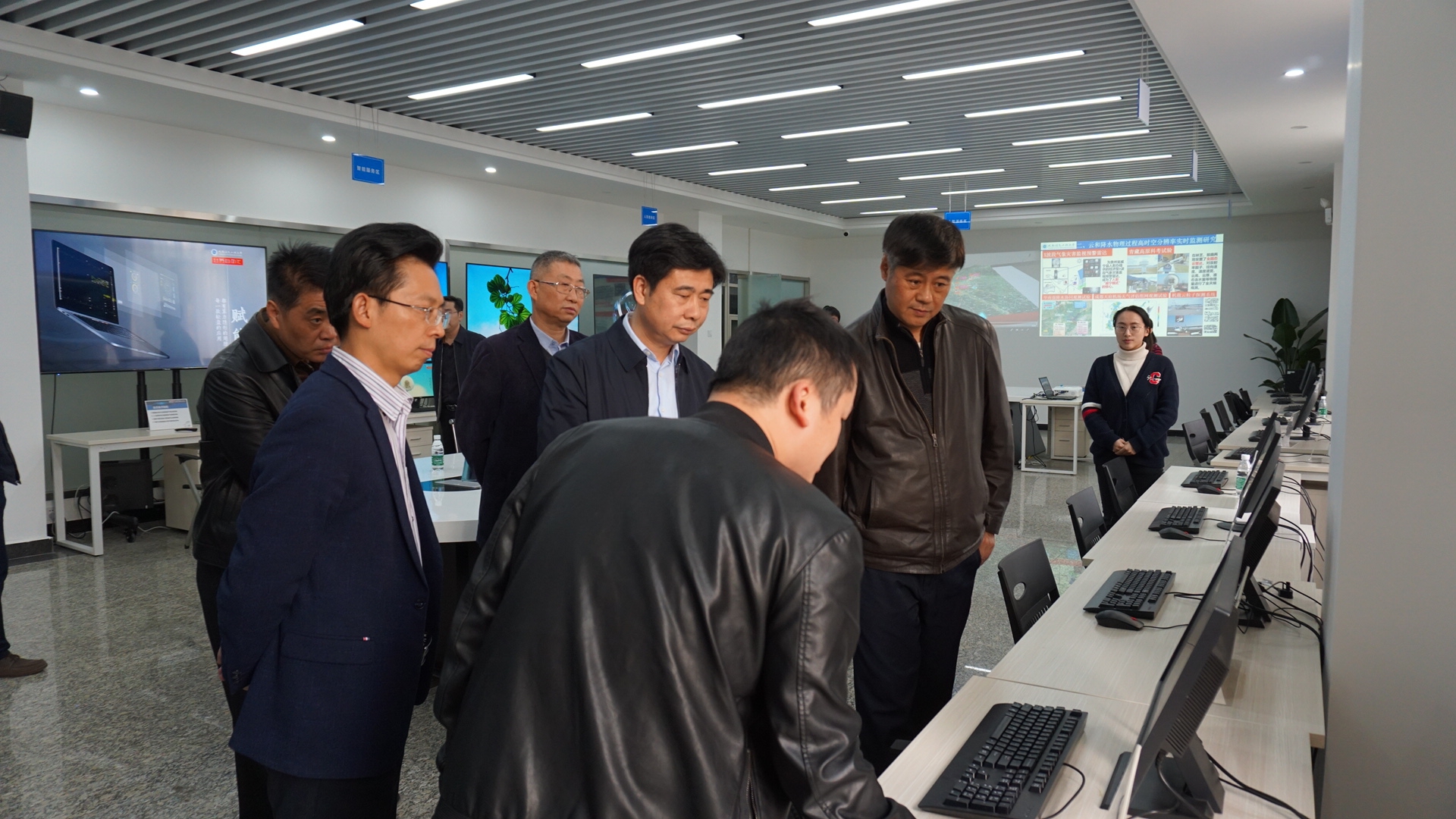 在校调研期间,熊绍员一行参观考察了“中国气象局-三亿网人工影响天气联合研究中心”和“中国气象局大气探测重点开放实验室”。
