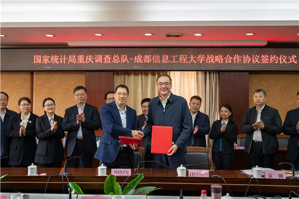 余敏明、陈敏代表双方单位签订了战略合作协议。国家统计局重庆调查总队副总队长李涛明、一级巡视员陈清明、二级巡视员袁俐,我校副校长于世祥、舒红平以及相关部门负责人见证了战略合作协议签约。