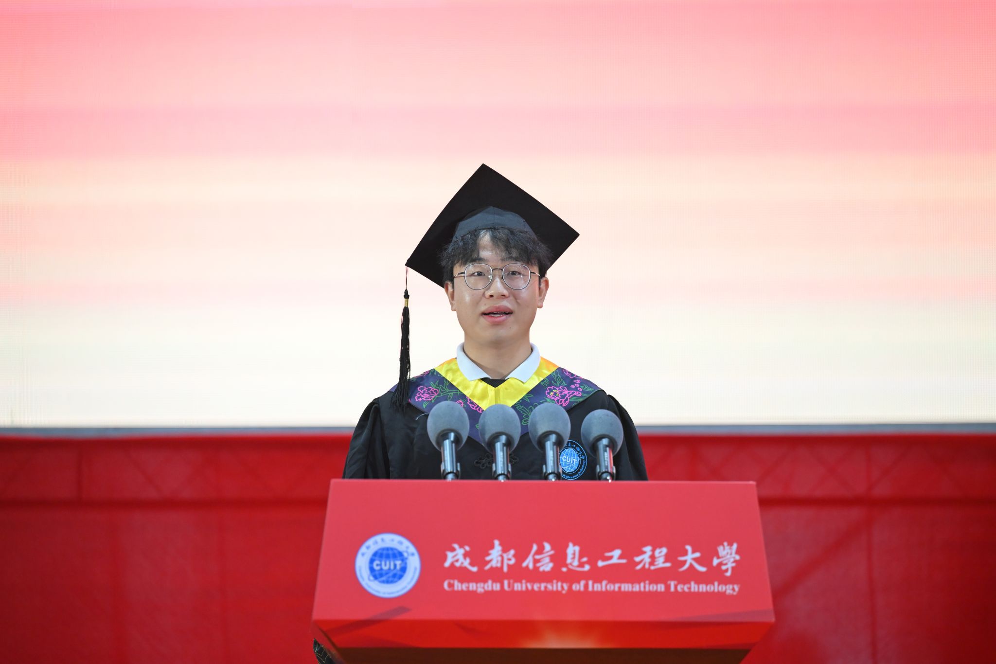青春榜样“十佳青年学生”称号获得者、软件工程学院王子坤同学代表2023届毕业生发表毕业感言,追忆了他在母校和恩师的辛勤培育下努力蜕变、成长进步的心路历程和热血初心,展望了心怀家国、憧憬人生奋斗新征程的发展蓝图。他号召成信学子努力传承弘扬“成于大气,信达天下”的校训精神,将个人梦融入中国梦,开拓创新、砥砺前行,做有理想、敢担当、能吃苦、肯奋斗的新时代青年,为实现中华民族伟大复兴而奋斗。