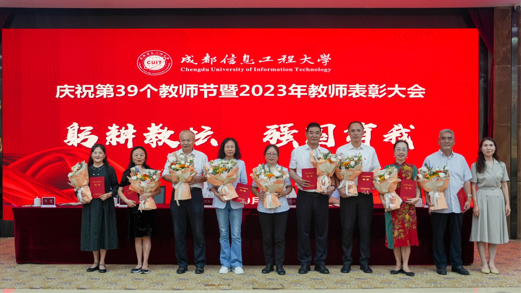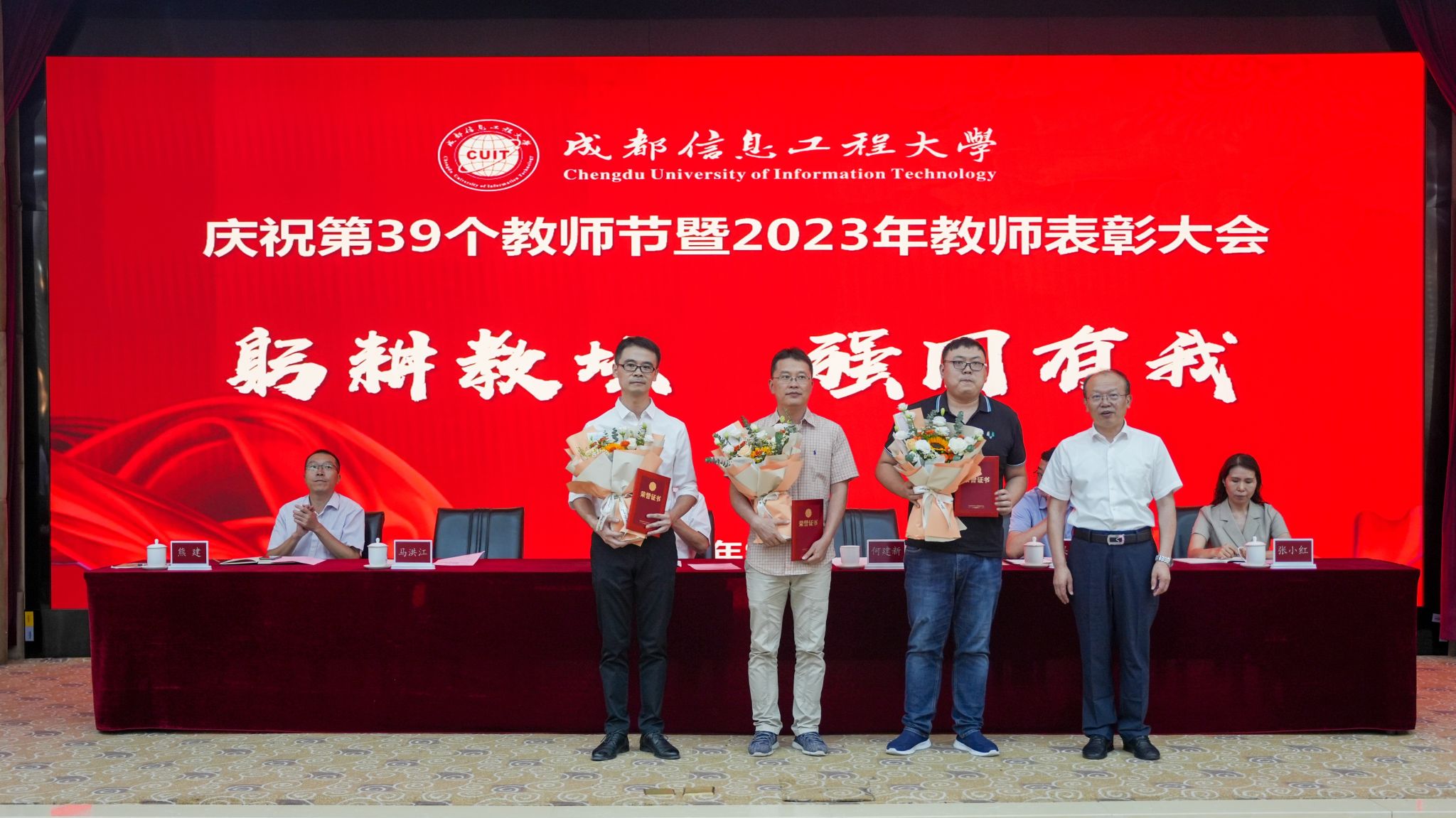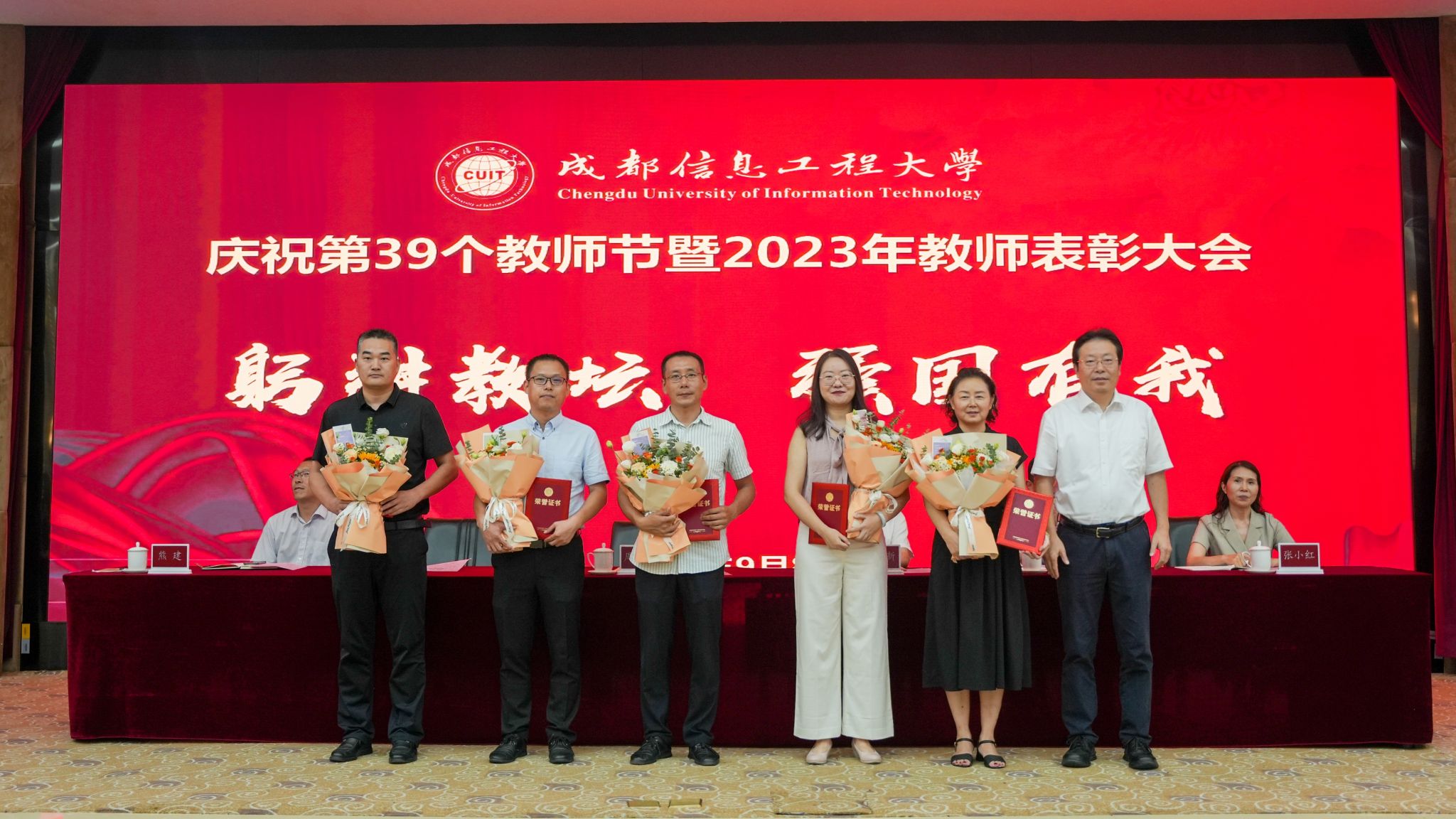 学校校长何建新宣读了表彰文件。学校对在人才培养、教学科研、服务社会等领域取得了突出成绩,为学校发展作出了卓越贡献的优秀教师作出表彰。周激流教授被授予“四川杰出人才奖”;资源环境学院刘志红教授获得“全国气象教学名师”称号;电子工程学院杨玲教授获得“四川省优秀教师”称号;大气科学学院陈科艺老师获得四川省“四有”好老师称号;乔少杰、张辉2名教师获得“省级人才”称号;李孝杰等3名教师新增为“四川省学术和技术带头人后备人选”;杨强等5名教师获得第六届全国高等学校电子信息类专业青年教师授课竞赛全国三等奖;魏维老师获得四川省普通本科高校教师教学创新大赛四川省三等奖;陈丁等9名教师获三亿网第五届 “优秀教师”称号;许东蓓等23名教师获得“校级教学质量奖”;崔林林等8名教师获得“青年教师教学奖”。学校还对本年度获四川省教育厅授予“光荣从教30年”称号的33名退休教师予以特别表彰。