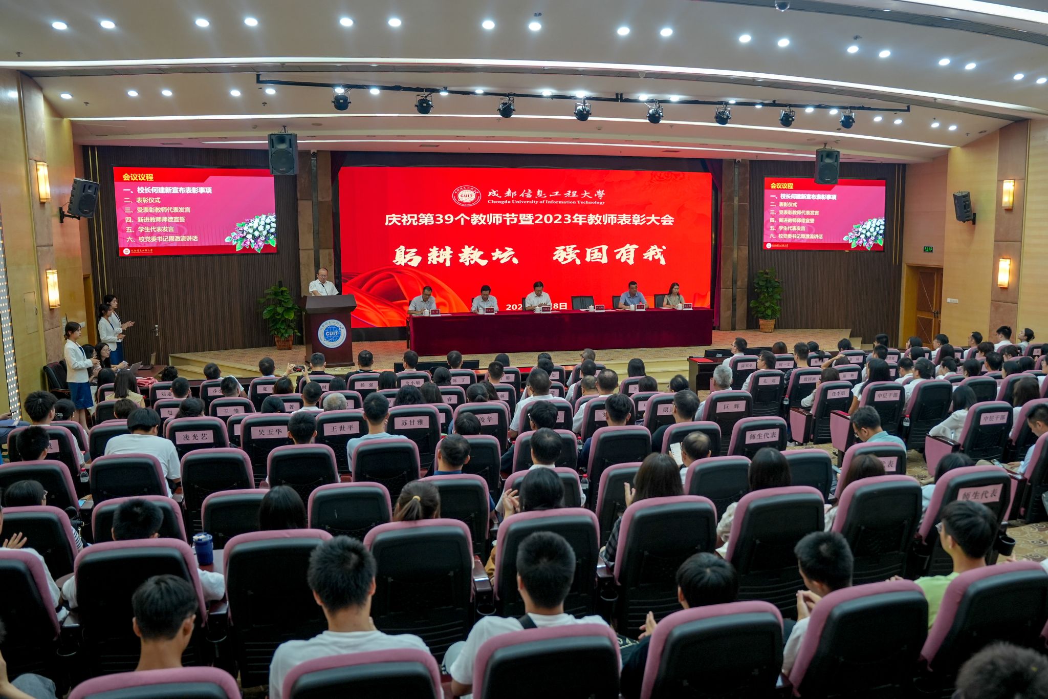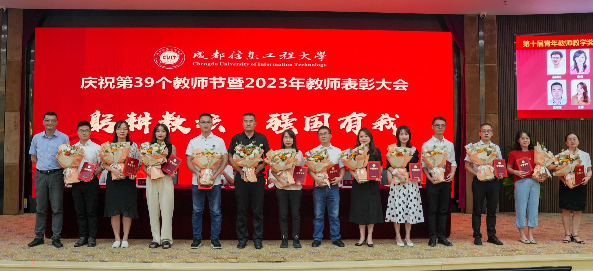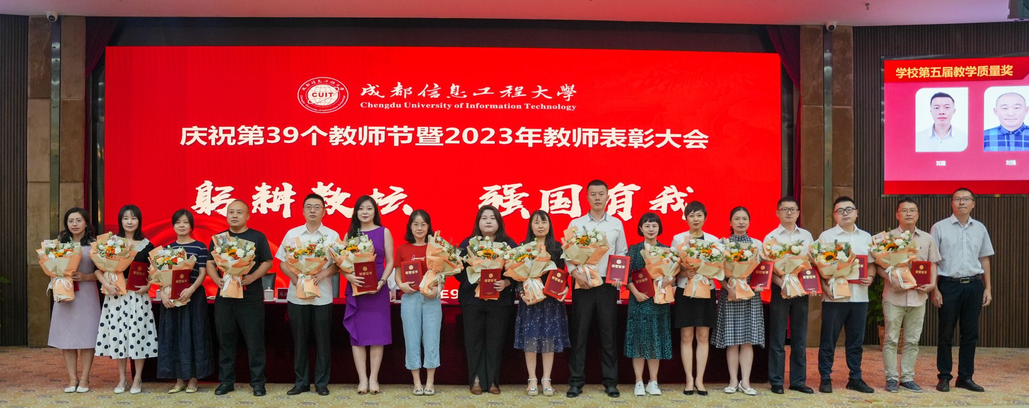 学校校长何建新宣读了表彰文件。学校对在人才培养、教学科研、服务社会等领域取得了突出成绩,为学校发展作出了卓越贡献的优秀教师作出表彰。周激流教授被授予“四川杰出人才奖”;资源环境学院刘志红教授获得“全国气象教学名师”称号;电子工程学院杨玲教授获得“四川省优秀教师”称号;大气科学学院陈科艺老师获得四川省“四有”好老师称号;乔少杰、张辉2名教师获得“省级人才”称号;李孝杰等3名教师新增为“四川省学术和技术带头人后备人选”;杨强等5名教师获得第六届全国高等学校电子信息类专业青年教师授课竞赛全国三等奖;魏维老师获得四川省普通本科高校教师教学创新大赛四川省三等奖;陈丁等9名教师获三亿网第五届 “优秀教师”称号;许东蓓等23名教师获得“校级教学质量奖”;崔林林等8名教师获得“青年教师教学奖”。学校还对本年度获四川省教育厅授予“光荣从教30年”称号的33名退休教师予以特别表彰。