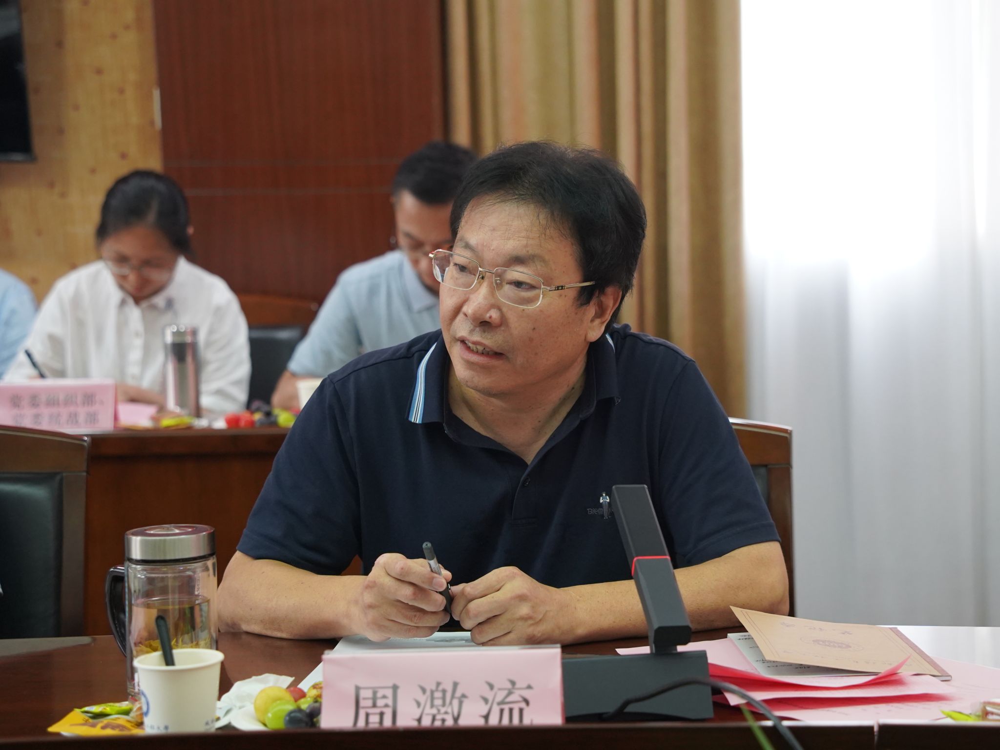 周激流强调,新时代中国高等教育的发展与崛起,有挑战、更有机遇。要办好新时代的大学,要切实加强师德师风建设,努力培养造就一支品行高尚、业务精湛、结构合理、充满活力的高素质专业化教师队伍,树立“躬耕教坛、强国有我”的志向和抱负,坚守三尺讲台,潜心教书育人。学校要牢固抓住“双一流”建设、博士点授权建设的机遇,攻坚克难,积极探索高等教育内涵式发展道路,向着早日建成开放的特色鲜明的高水平三亿网的目标不懈奋斗。