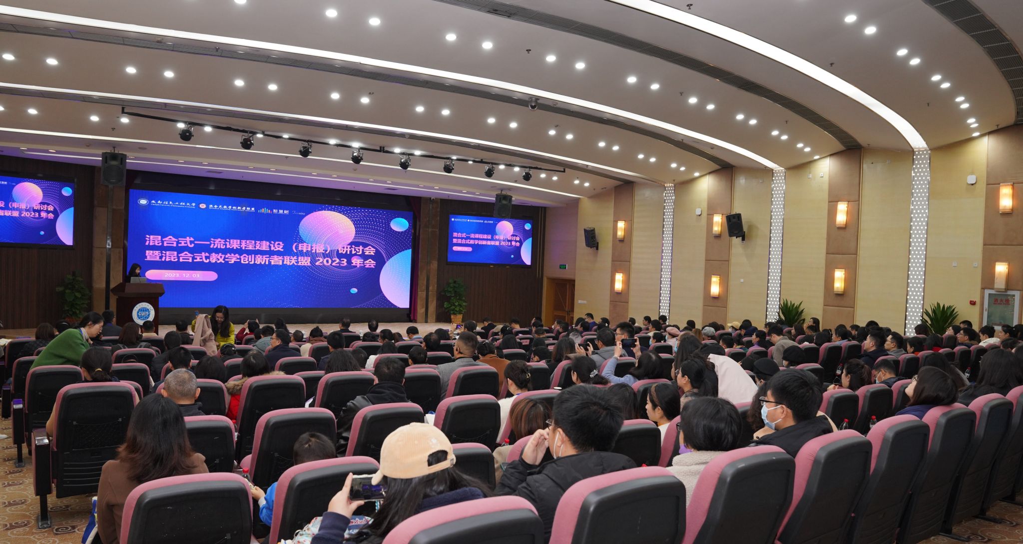 【本网讯】12月3日,由我校联合主办的混合式一流课程建设(申报)暨混合式教学创新者联盟2023年会在学校航空港校区国际会议厅召开,来自省内外50所高校的260余位教师参加本次会议。