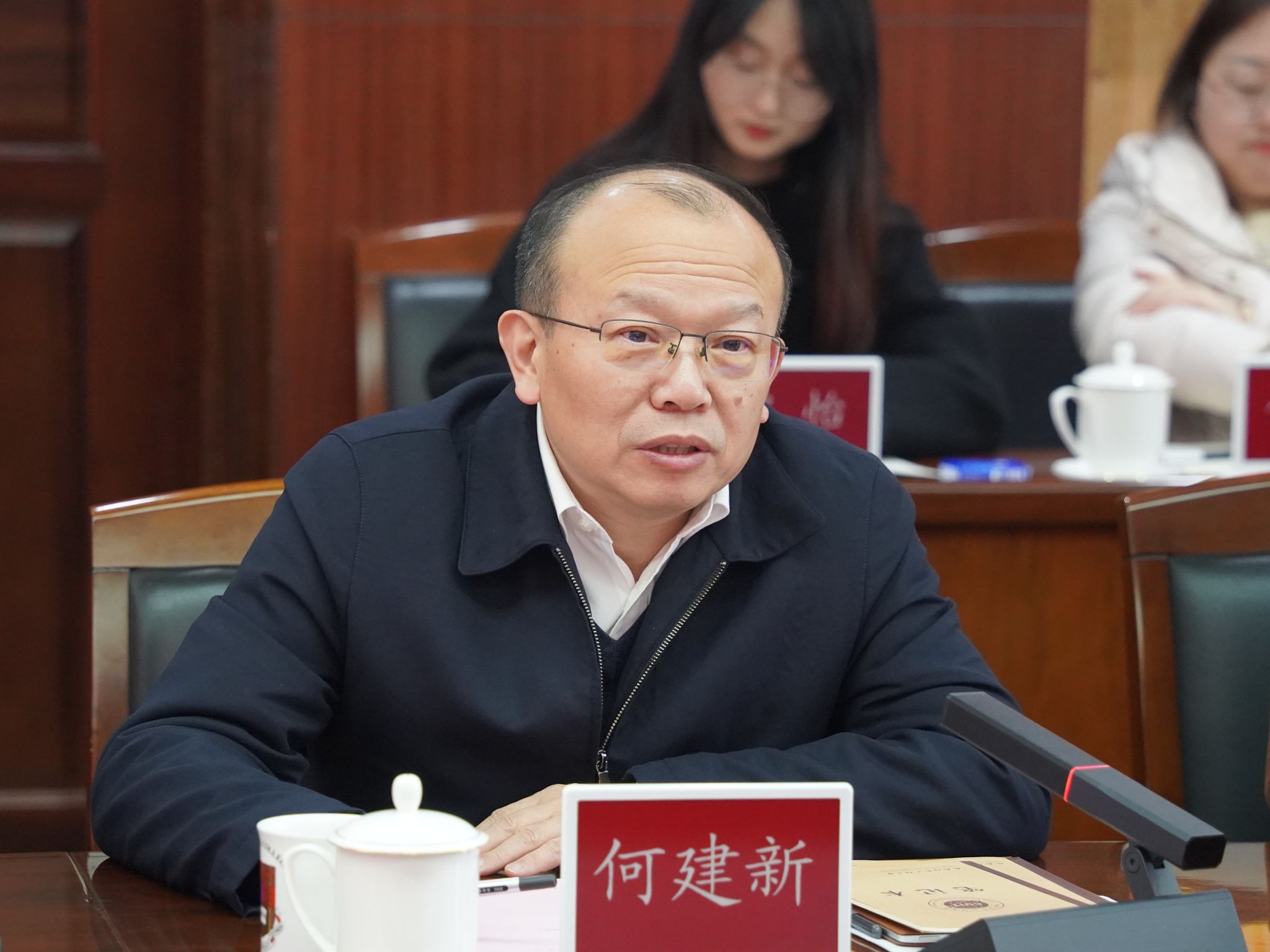 何建新对华灯鑫一行来校调研交流表示欢迎,并介绍了学校发展历史、学科建设、专业设置、教育教学等方面情况,希望加强合作与交流,相互借鉴,共同提高。