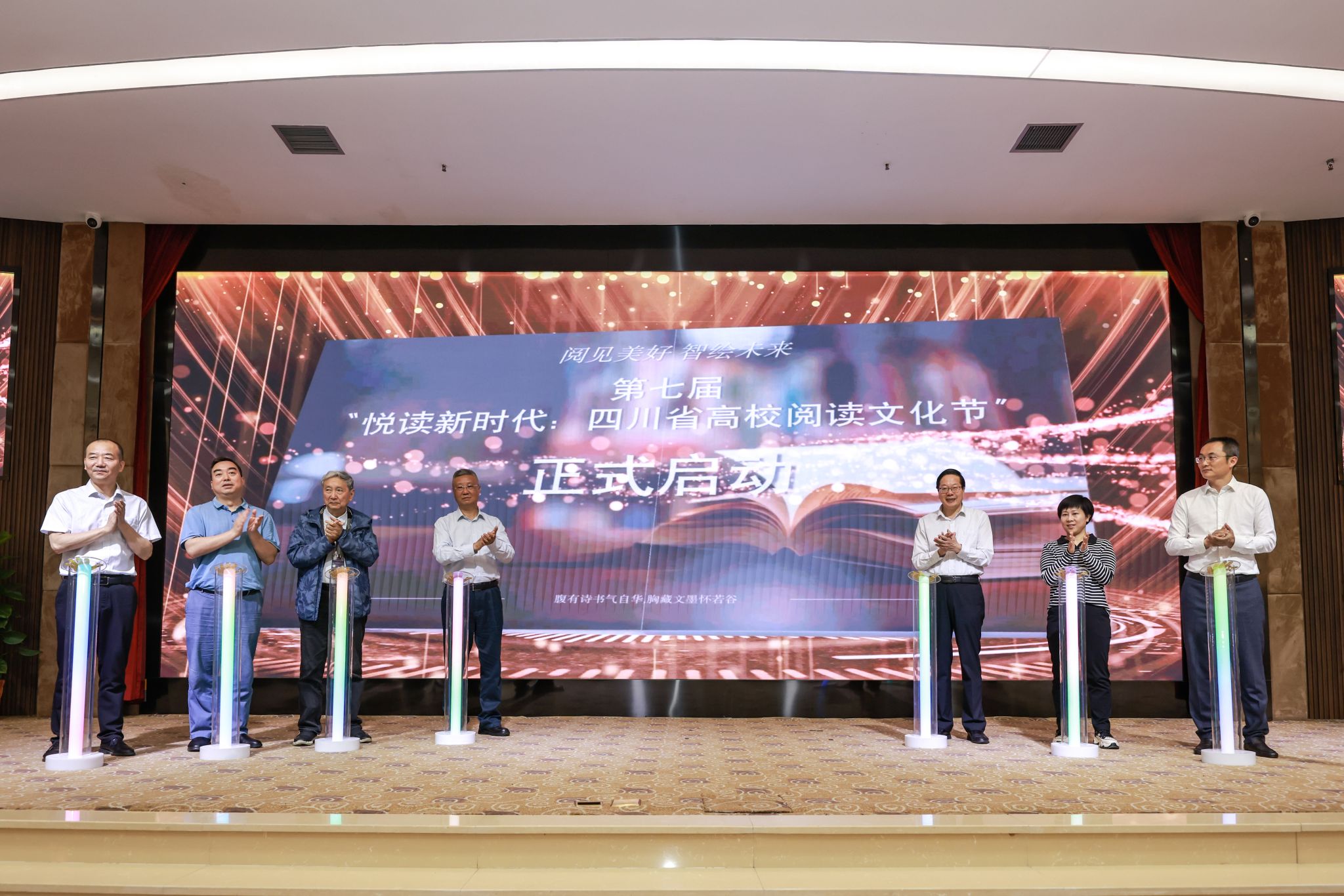 【本网讯】4月19日,为深入学习贯彻党的二十大精神和习近平文化思想,坚持高质量发展理念,以数智技术赋能全民阅读,凝聚高校师生奋进新时代的强大精神力量,为教育强省、文化强省建设不断提供更加充沛的文化滋养,在四川省教育厅的指导下,由四川省普通高等学校图书情报工作指导委员会、四川省图书馆学会高等学校系统委员会主办,三亿网承办的“阅见美好 智绘未来”——第七届“悦读新时代:四川省高校阅读文化节”启动仪式在学校航空港校区盛大举行。韬奋基金会理事长刘伯根,四川省教育厅高教处副处长高波,四川省图书馆党委书记、馆长王龙,四川省社会科学界联合会科普处调研员张晓泓,四川省图书馆学会秘书长赖柯,四川省高等学校图书情报工作指导委员会主任委员兰利琼,特邀专家谭楷,学校党委书记沈火明、副校长朱明出席了会议。