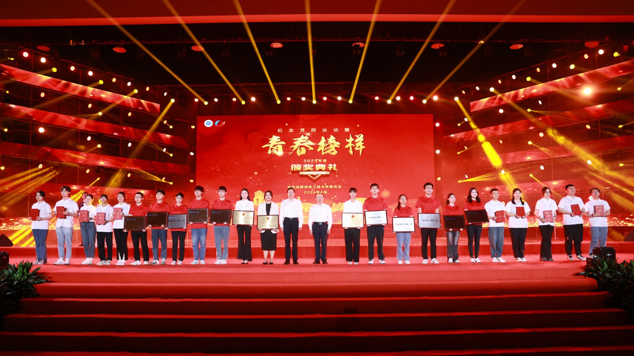 【本网讯】4月29日晚,学校纪念五四运动暨2023年度“青春榜样”颁奖典礼在航空港校区体育馆举行。在校校领导,各职能部门主要负责人,各学院党委书记(副书记)、院长、学生科科长、副科长,2023年度“青春榜样”获奖学生以及家长代表、师生代表参加了颁奖典礼。