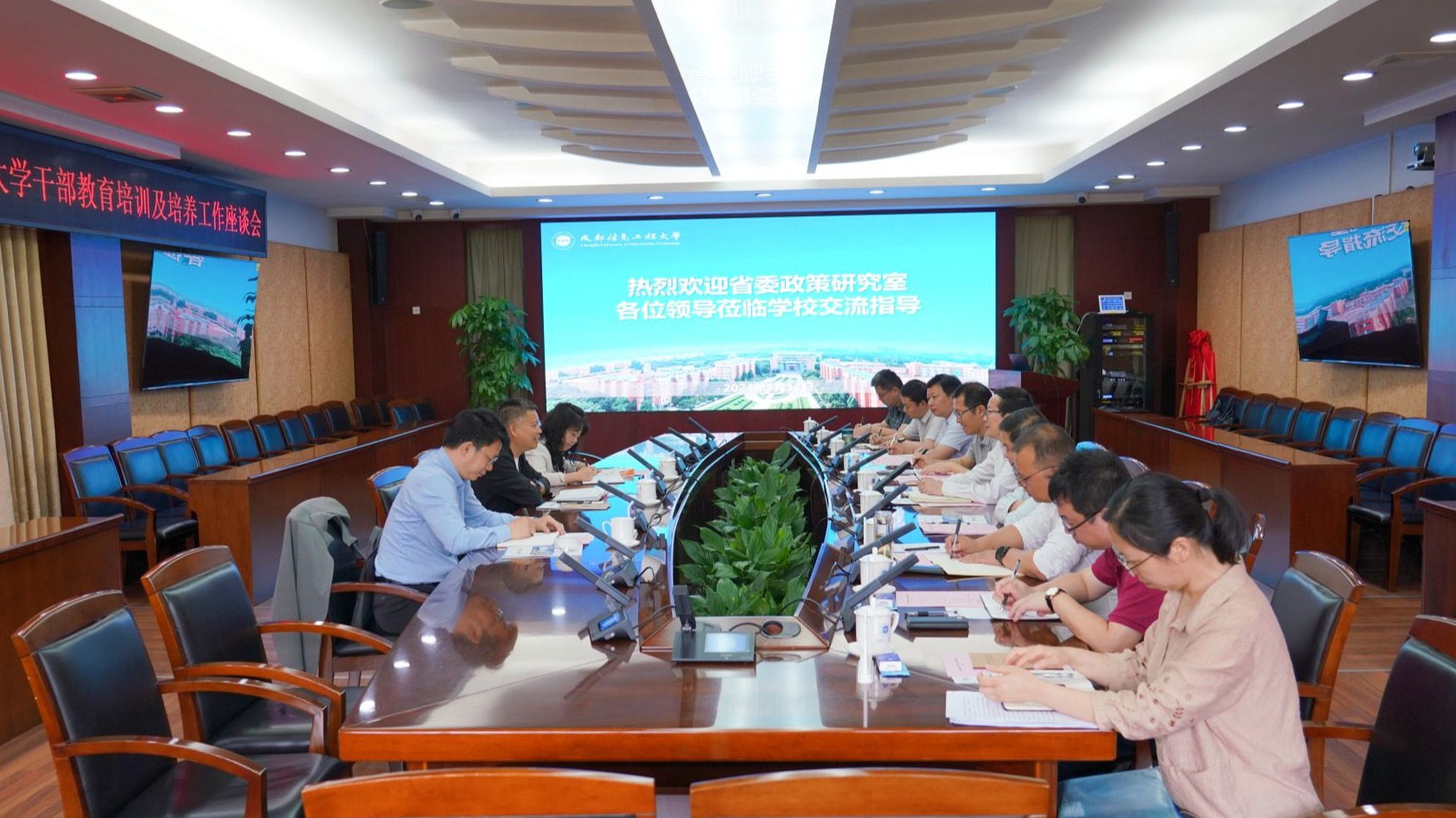 【本网讯】5月11日上午,四川省委政策研究室机关党委书记王孝平、人事处处长周卫红、协同创新中心主任曹乔,四川省网络治理研究中心(四川省网信人才发展研究中心)主任郑鸿到我校交流座谈。学校党委书记沈火明,相关部处、学院负责人参加会议,会议由党委常委、党委组织部、党委统战部部长熊建主持。