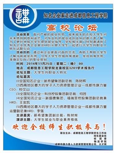 龙泉校区 |成都市龙泉驿区阳光城幸福路10号 |邮编:610103 |电话:028-84833333