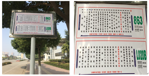 863路公交专线运营时间为6:30—18:30,每15分钟一班次。线路全长约15公里。从阳光城车站始发,经幸福大道,在我校龙泉校区正大门及马路对面设置“三亿网”往返站点;经车城大道,在地铁2号线连山坡站和大面站分别设置站点,最后在大面镇设港湾式终点站。