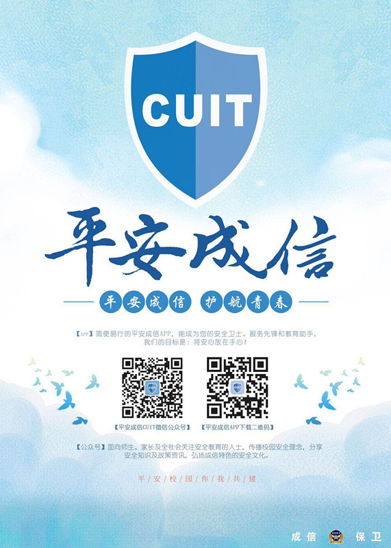 亲爱的老师、同学们和校友们: 首届“平安成信”短视频大赛现已火热开启。请大家关注安全,踊跃参加。请不要吝啬您的创意,把好的作品砸过来吧!