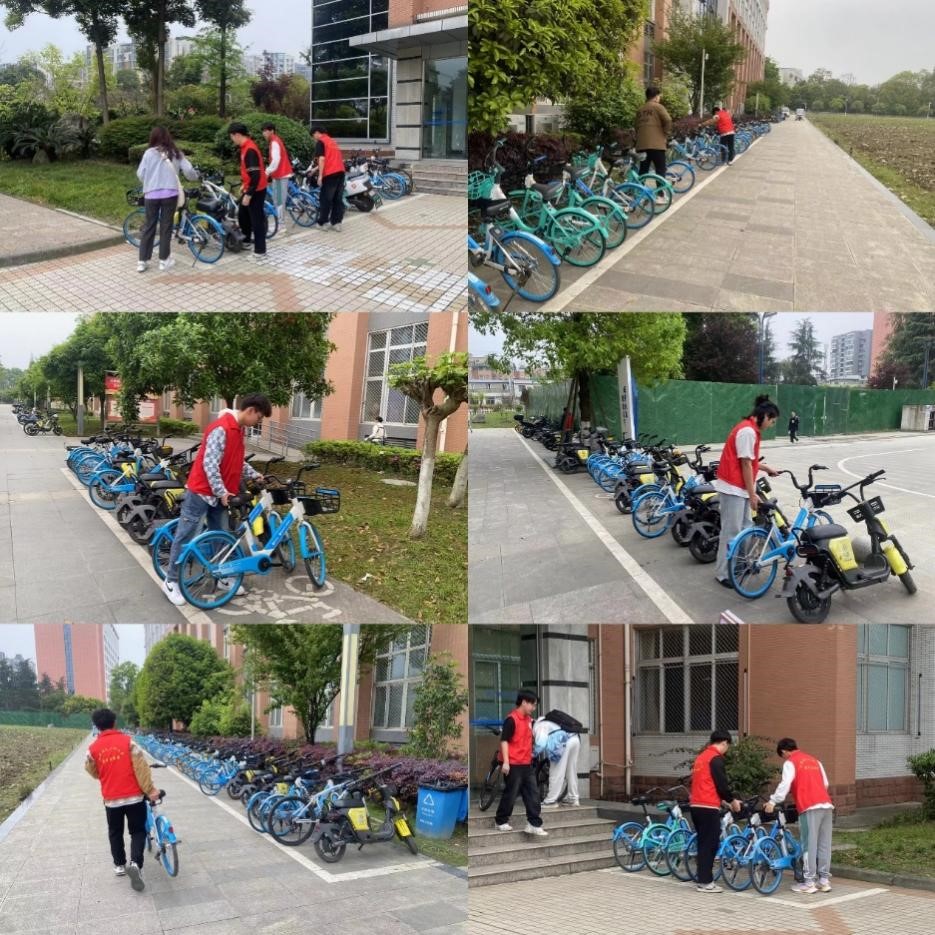 三、文明劝导。积极参与志愿服务和文明劝导活动,积极宣传文明骑行、有序停放的意识规则,提醒同学们爱护公共设施,见到乱停放的单车自觉扶起并规范停放。