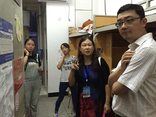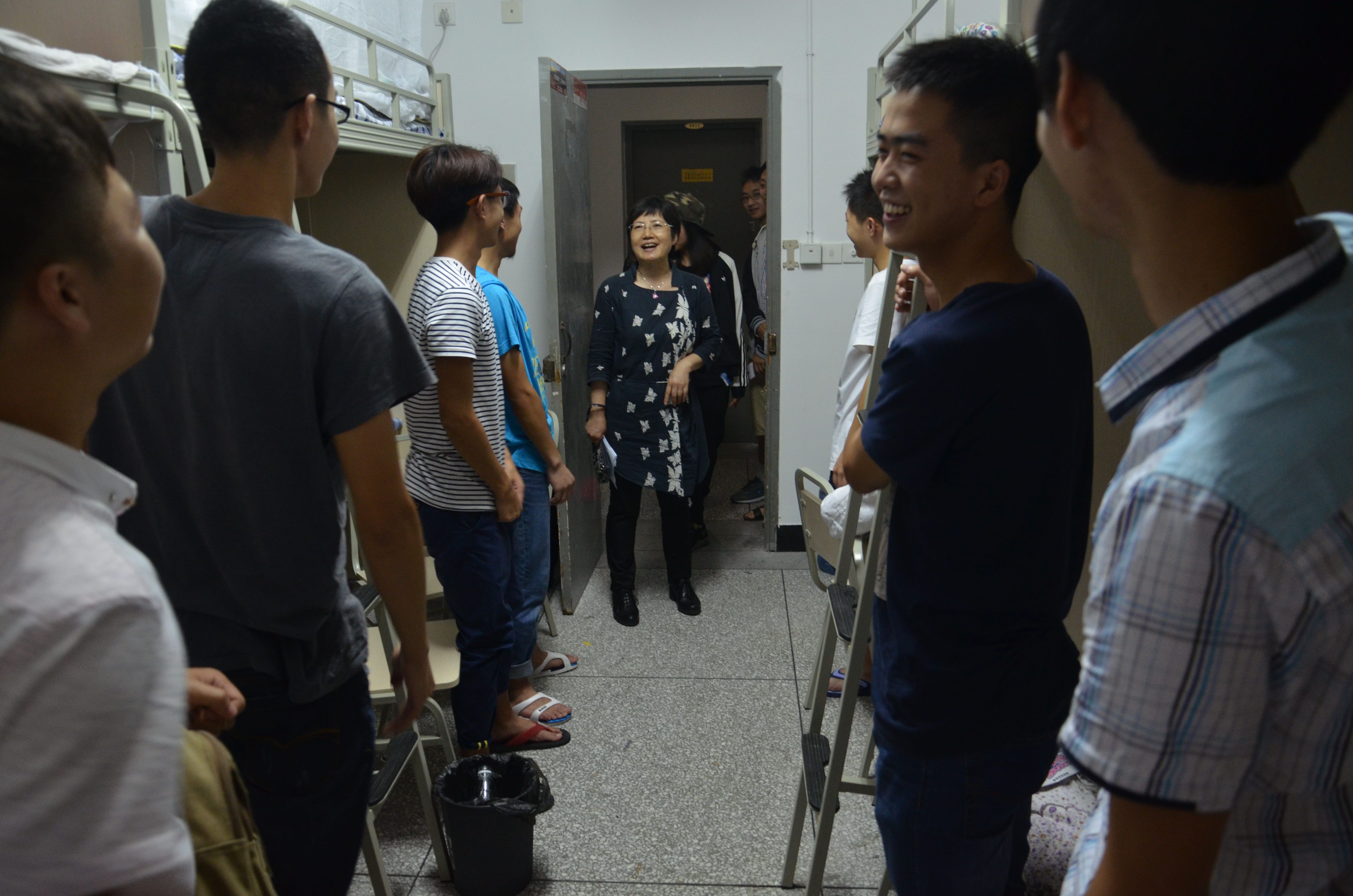 活动开始后,学院领导分为两个小组前往新生寝室慰问并指导相关工作。在院领导以及辅导员的亲切询问下,同学们都畅所欲言,说明了近期生活情况并表达对日后大学生活的向往。