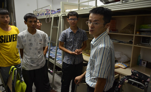 领导及辅导员与新生亲切的交谈,希望他们能够尽快改变心态,以便适应大学新生活;要注意处理和同学之间的关系,并及时反映寝室内遇到的问题。